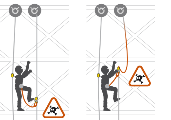 手升下面连接了牛尾绳,长时间处于松弛状态,如果它作为单一保护点,一旦发生冲坠,例如当全部重力在另一条绳索时,保护点突然失效发生坠落,所有的冲击力就会瞬间转移到手升上,很有可能造成危险。而胸升却不会出现这种情况,因为胸升始终与安全带和绳索紧密连接,它会随着身体位置的移动而沿着绳索移动,不会出现突然冲坠的情况,