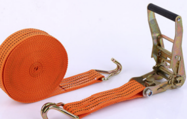 绳子收紧器的部件包括挂钩、栓紧带、紧固器、棘轮轴、保险片等,栓紧带是采用尼龙编制而成,双面锁边,具有高强度的拉力;挂钩结实耐用,用于解决打结捆绑的不便;紧固器相当于力学手柄,可以摆脱使用蛮力捆绑货物的方式;紧凑棘轮结构,简单实用,全热处理部件,保证在强大拉力下不易变形,不惧磨损。