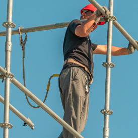脚手架搭建麻豆精品国产传媒AV防坠器保护工人安全